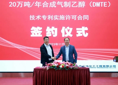 隨后,荊門源晗公司總經理周虎,延長中科(大連)能源科技股份有限公司總經理王輝代表雙方簽署了20萬噸/年合成氣制乙醇(DMTE)技術專利實施許可合同并分別致辭。簽約儀式結束后,召開了項目設計開工會,與會人員對設計方案進行了深入交流。