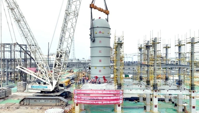 首吊成功!凱越乙醇項目首臺核心設(shè)備吊裝就位